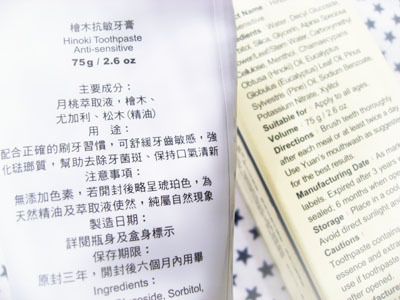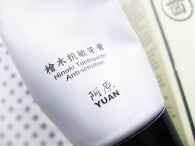 ユアン ヒノキ センシティブの歯磨きペーストは、台北語では「阿原檜木抗敏牙膏」と書くんですね。